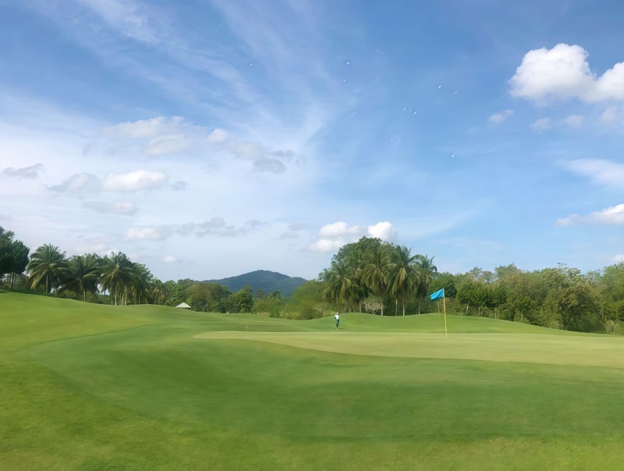 Greenwood Golf & Resort, located in Pattaya, offers a picturesque golfing experience with its tree-lined rolling hills and extensive landscaping. Designed by five-time British Open champion Peter Thomson and Michael Wolverine, this British-style course features a thoughtful 27-hole layout with mild elevation changes, links-style fairway undulations, and strategic pot bunkers. The A Course provides a more relaxed play with minimal water hazards, while the B Course introduces more challenging water features, starting with the doglegging par-4 1st hole. The B and C Courses demand precision and skill, with native grass areas and characteristic pot bunkers testing golfers at every turn. The clubhouse offers a scenic overlook of Courses A and B, making it the perfect spot to enjoy a cold drink while taking in the sunset over the hills. Constantly upgraded, Greenwood Golf & Resort remains a favorite Pattaya golf destination, known for its challenging layout and serene environment.