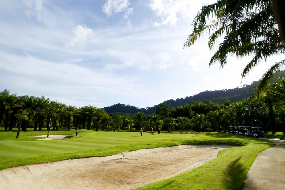 Katathong Golf Resort & Spa, located in the serene Phang Nga Valley, offers a unique 18-hole course surrounded by stunning mountain views and natural waterfalls. Developed on a former tin mine, this course takes advantage of the area's natural contours and rich history. The narrow fairways, undulating hills, and elevation changes create a challenging yet picturesque golfing experience. Signature holes include the par-3 10th with its island green and the scenic 16th, requiring precision to navigate former mine ravines. The resort also features a large Sino-Portuguese style clubhouse and a meditation center. Ideal for golfers seeking tranquility and scenic beauty, Katathong is a must-visit for those staying in Khao Lak, Krabi, or Phang Nga.