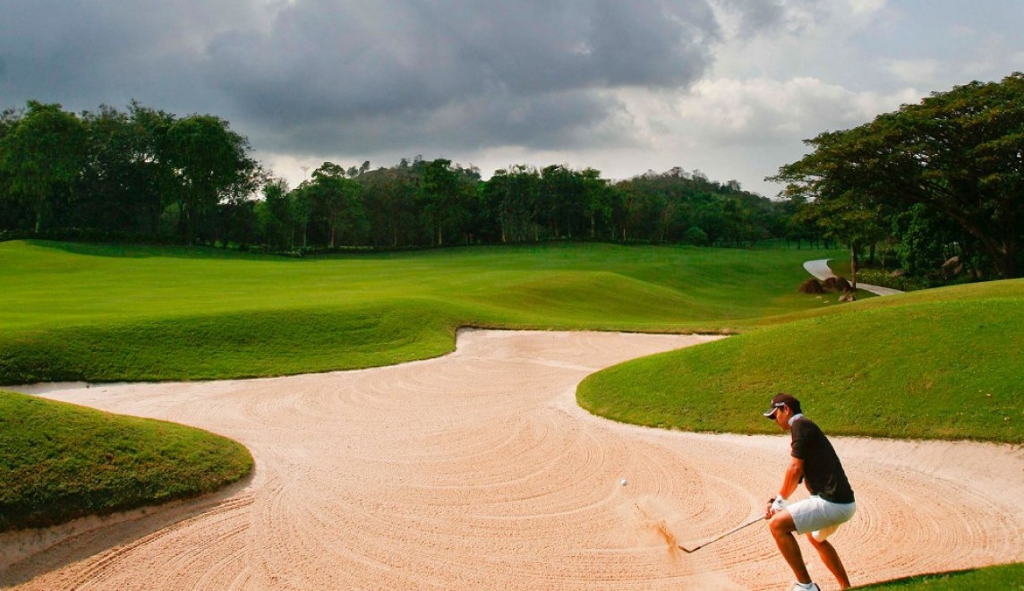 Laem Chabang Golf Club is a stunning Jack Nicklaus-designed championship course, widely regarded as the best layout in Pattaya and one of Thailand’s most beautiful. The 27-hole course spans 700 acres and offers a unique golfing experience across three distinct nines: Mountain, Lake, and Valley. Each nine incorporates the area’s natural terrain, including hills, lakes, and river valleys, creating a challenging yet scenic course. The Mountain Course (3,446 yards) features lush vegetation and elevation changes, while the Lake Course (3,419 yards) is defined by a stream meandering through most holes. The Valley Course (3,619 yards) plays the longest, with water hazards and bunkers adding to the challenge. Laem Chabang’s well-maintained fairways, elevated greens, and abundant natural beauty provide golfers with a memorable round. With excellent clubhouse facilities and accommodation, this course is a must-play for visitors to Pattaya or those traveling from Bangkok.